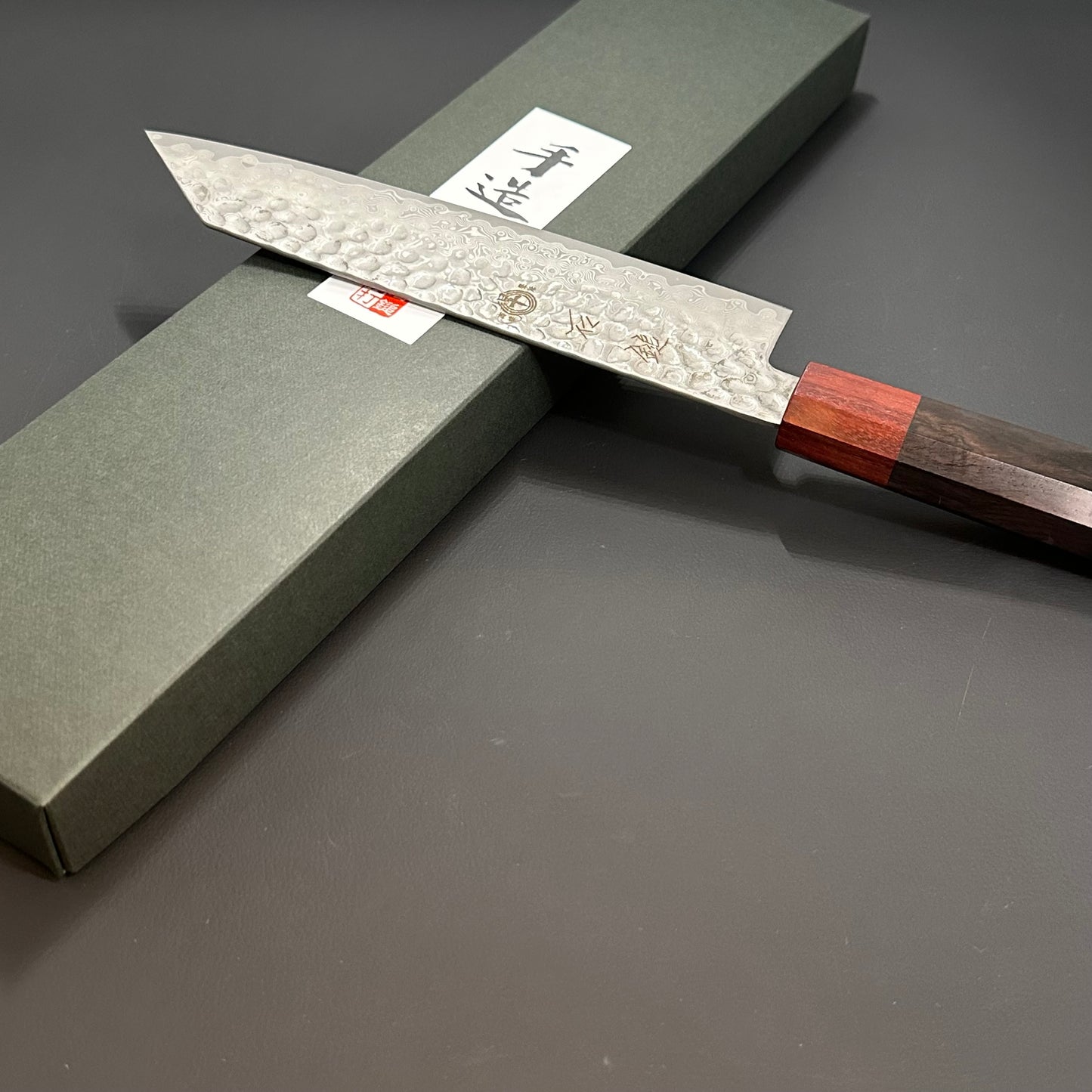 A versatile Japanese knife combining the functions of a chef’s knife and a slicer. With its straight edge and angled tip, the Kiritsuke is ideal for precise cuts, slicing fish, and handling vegetables with finesse.